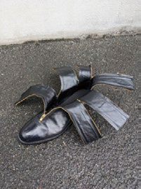 たとえば、身体に麻痺がある方々のための巻きスカート型のボトムス(bottom’all /写真A・B)、手首からわき腹までジッパーで開閉できるジャケット(写真C)、車椅子ユーザーに配慮したジッパーが多数あるブーツ(バナナブーツ/写真D・E)などを開発し、2022年9月にはパリ・ファッションウィークで車椅子ユーザーのみのファッションショーを開催いたしました。この取り組みにより、その後、多くの車椅子ユーザーがニューヨークやミラノのファッションウィークに積極的に参加するようになり、障がいの有無に関わらず、だれもがオシャレを楽しむ社会に近づきつつあります。