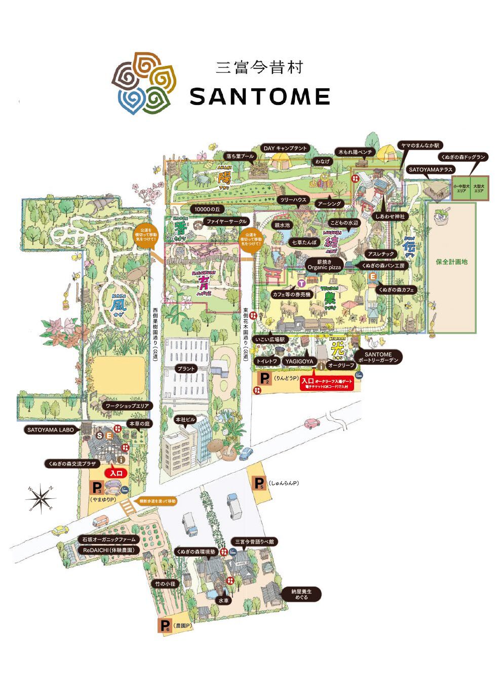 石坂産業株式会社の社員が働く場所は、埼玉県三芳町、川越市、所沢市、狭山市の1町3市に跨っています。2015年、この土地で働き、暮らす多世代の人びとが集い、四季彩に織りなす美しい雑木林の中で、憩い、食し、遊び、学ぶ、交流広場を「三富今昔村」として開村しました。