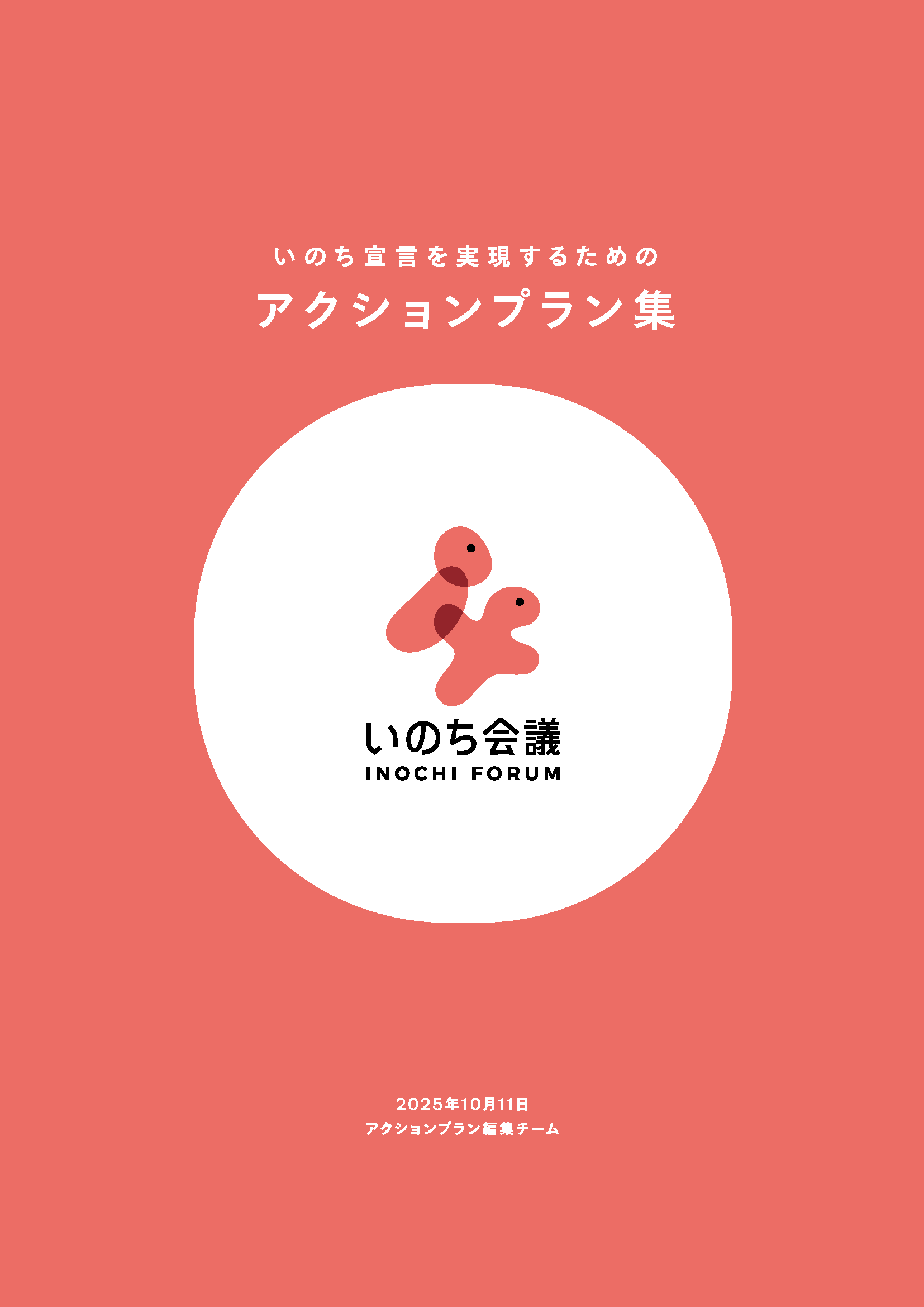この「いのち宣言」は、いのち会議の活動趣旨に賛同してくださった135人の方から寄せられた103本アクションプランをもとに作成されました。なお、アクションプランについては「いのち宣言を実現するためのアクションプラン集」としてまとめました。