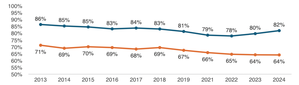 Percentage of children having dreams and goals for the future (National Survey of Academic Achievement and Learning Status, Osaka Prefecture results).
